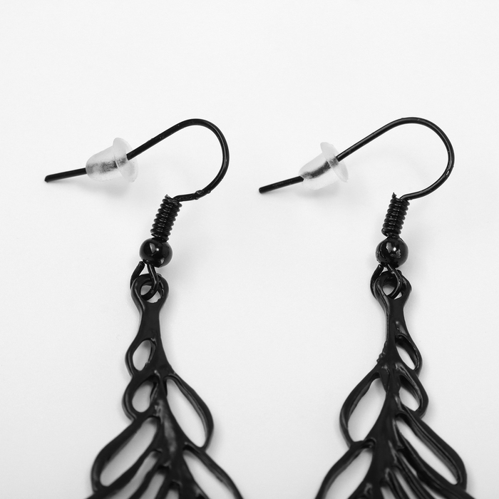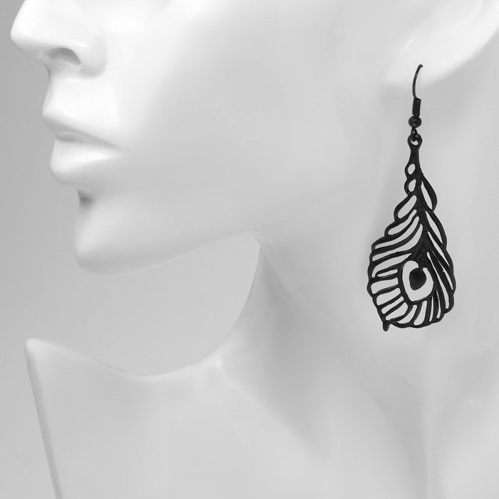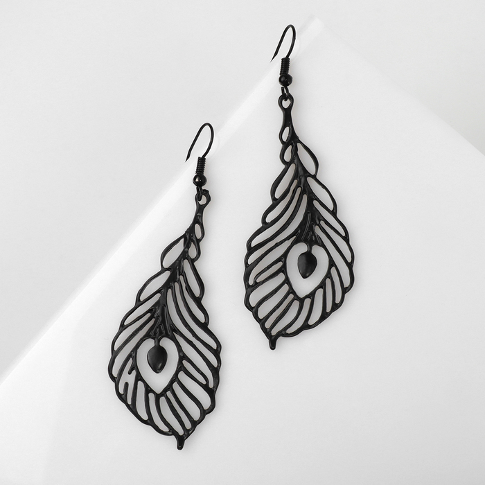 Серьги висячие «Перья» павлина, цвет чёрный матовый, 7,5 см — Характеристики
