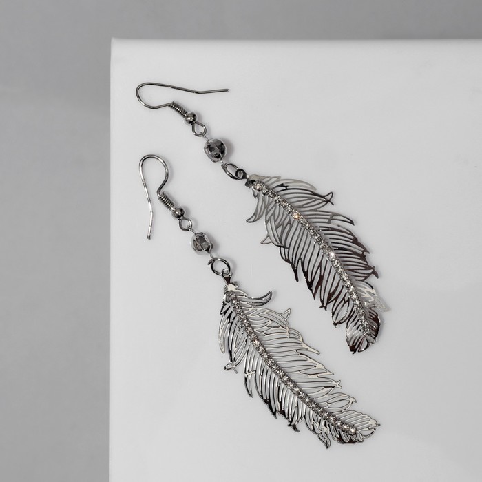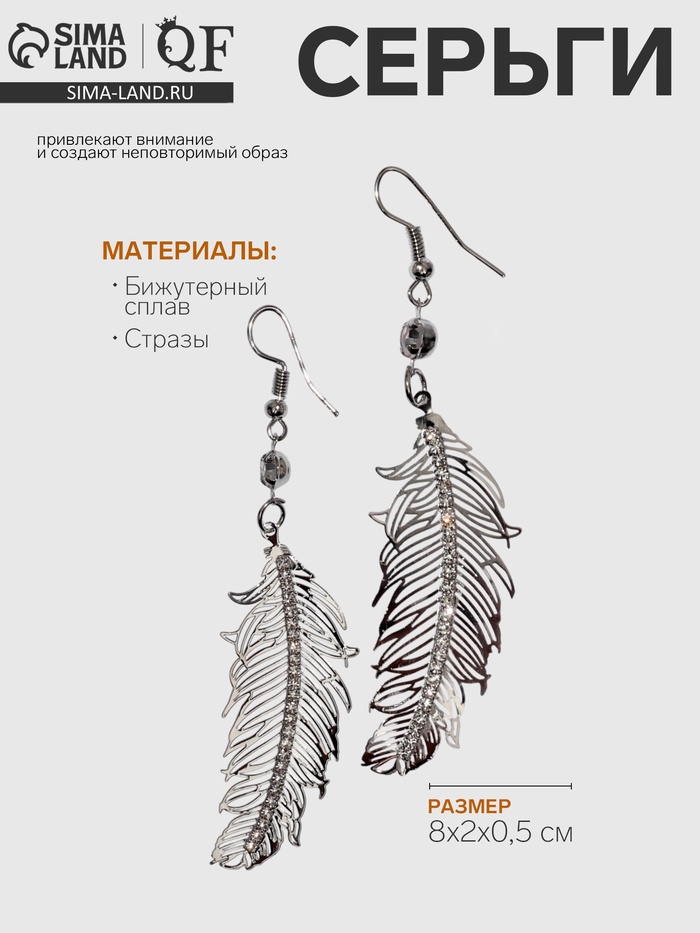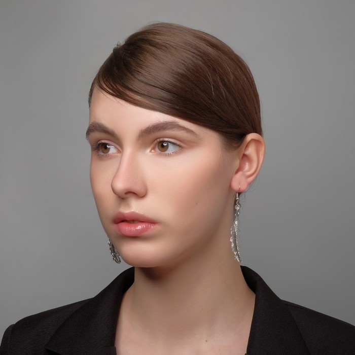 Серьги висячие «Перья» ветер, цвет белый в серебре, 8 см — Характеристики