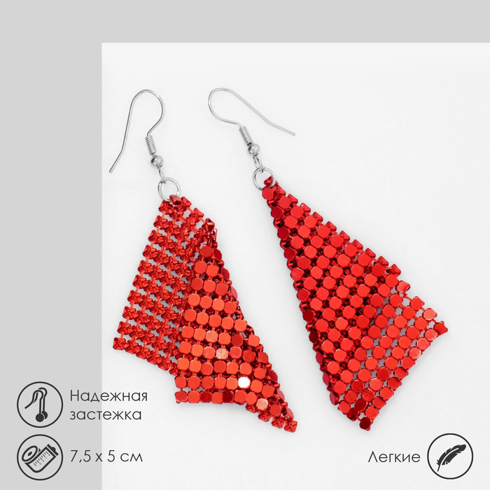 Серьги висячие «Ромб» диско, цвет красный в серебре, 7,5 см — Характеристики
