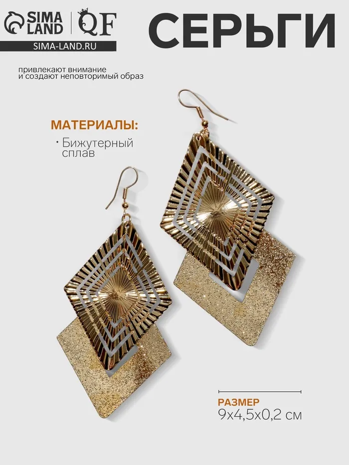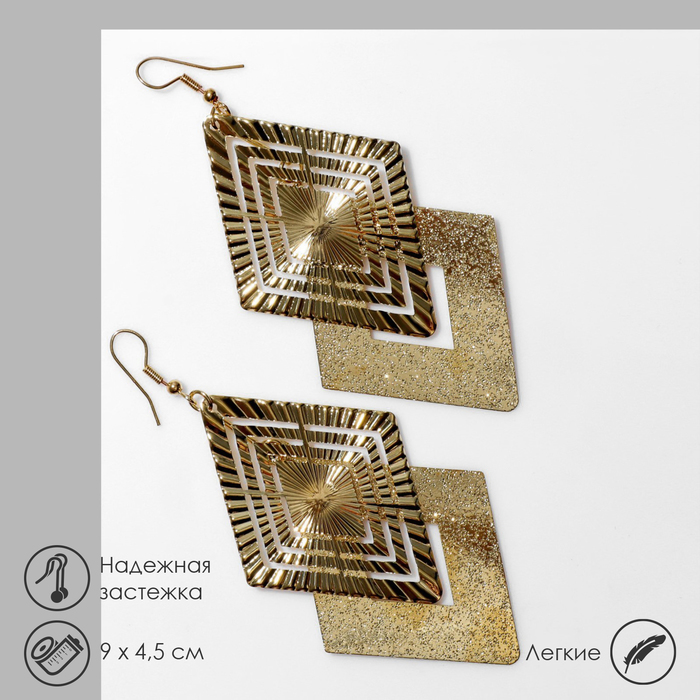Серьги висячие «Ромб» дуо, цвет золото, 9 см — Характеристики