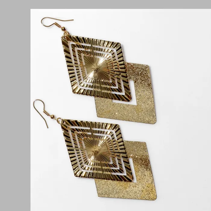 Изящные серьги длиной 9 см с геометрическим мотивом «Ромб» в золотистом исполнении привлекают внимание своей лёгкостью и выразительностью. Металлическая основа с золотым покрытием создаёт благородный блеск, который выгодно подчёркивает форму и добавляет образу элегантности.