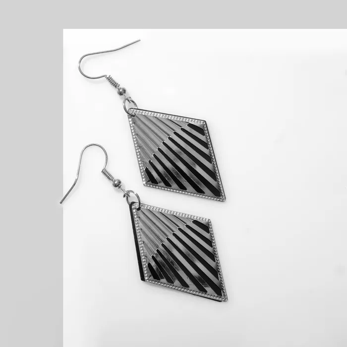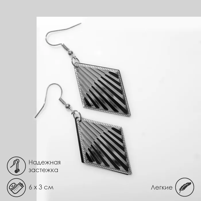 Серьги висячие «Ромб» двойной, цвет серебристо-чёрный, 6 см — Характеристики