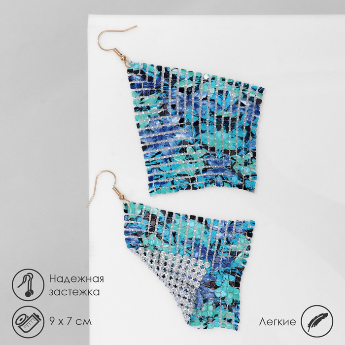 Серьги висячие «Ромб» кольчуга, переливы, цвет сине-зелёный, 9 см — Характеристики