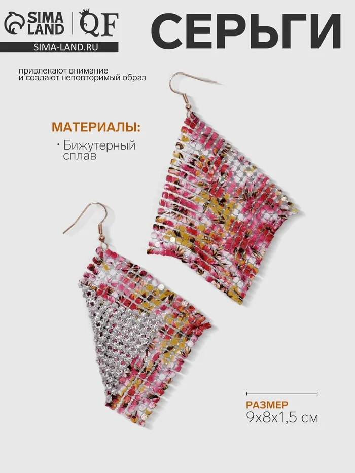 Серьги висячие «Ромб» кольчуга, цветы букет, цветные, 9 см — Характеристики