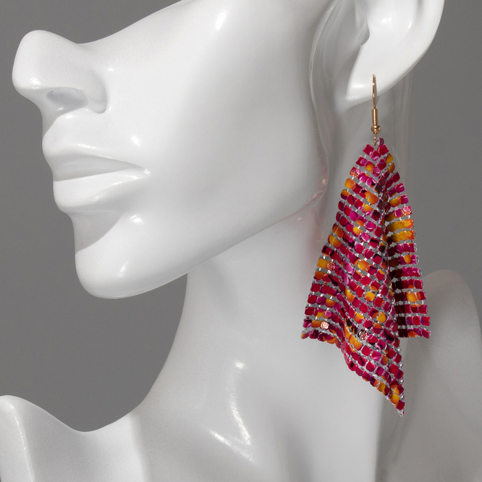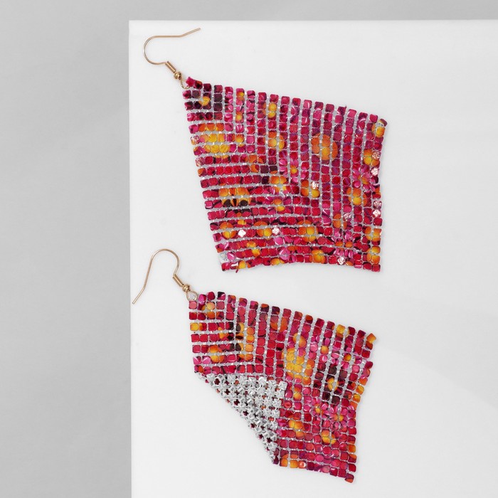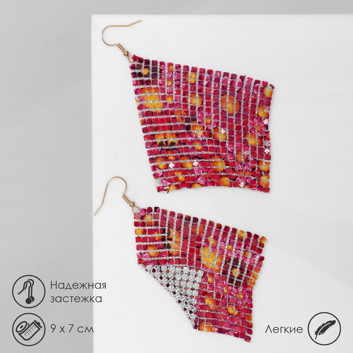 Серьги висячие «Ромб» кольчуга, цветы яркие, цвет жёлто-розовый, 9 см — Характеристики