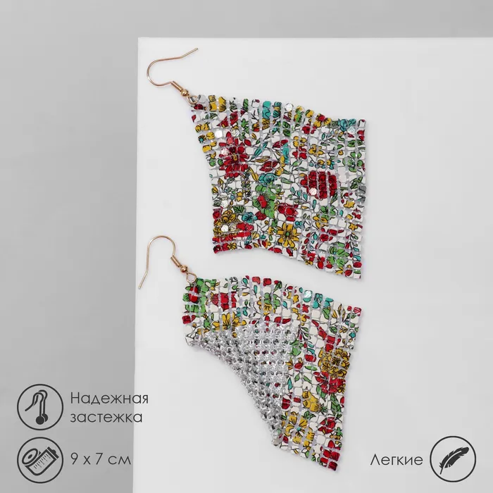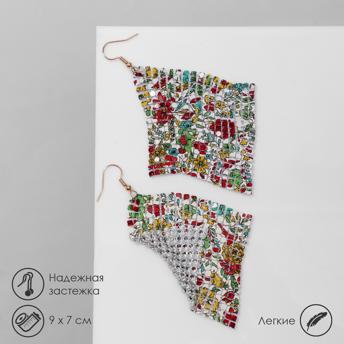 Серьги висячие «Ромб» кольчуга, цветы летние, цветные, 9 см — Характеристики