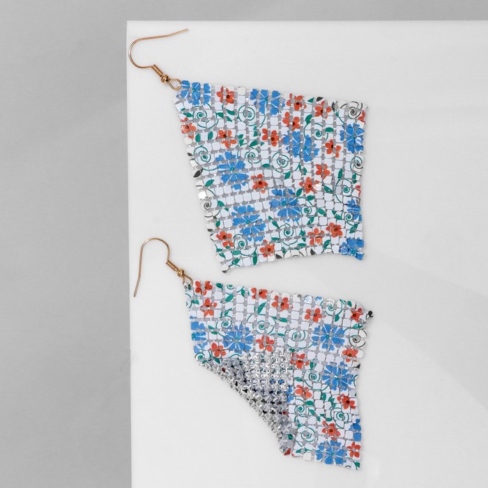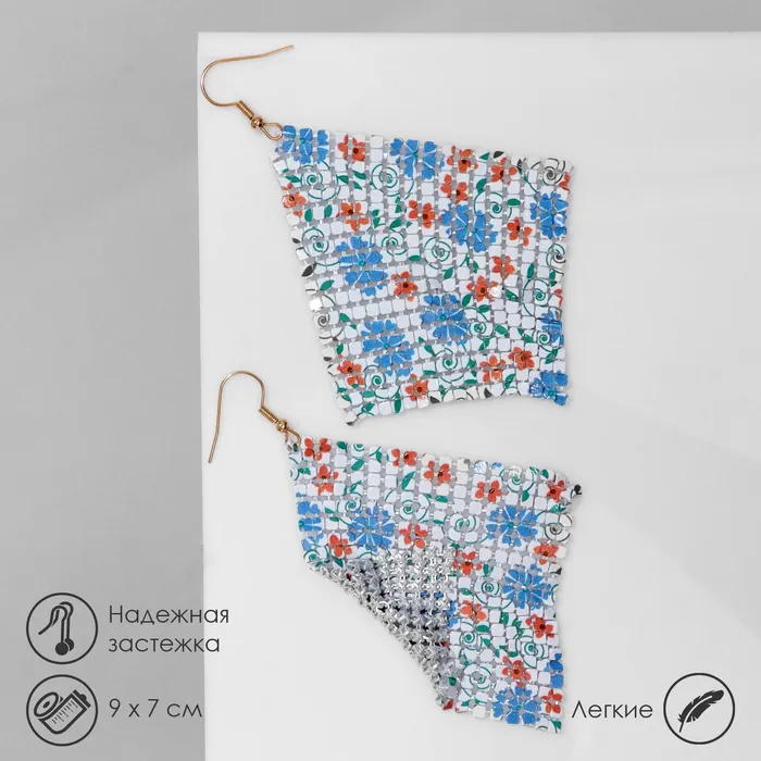 Серьги висячие «Ромб» кольчуга, цветы, цвет розово-голубой, 9 см — Характеристики