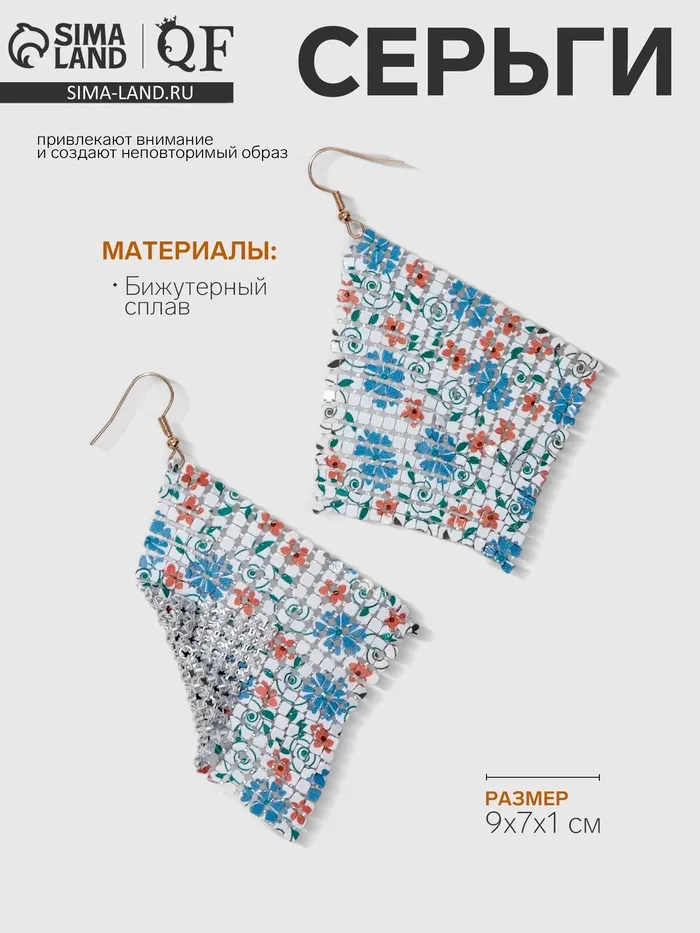 - Стильная изюминка: форма ромба и цветочный дизайн делают эти серьги универсальными, подходящими как для повседневной носки, так и для особых случаев.