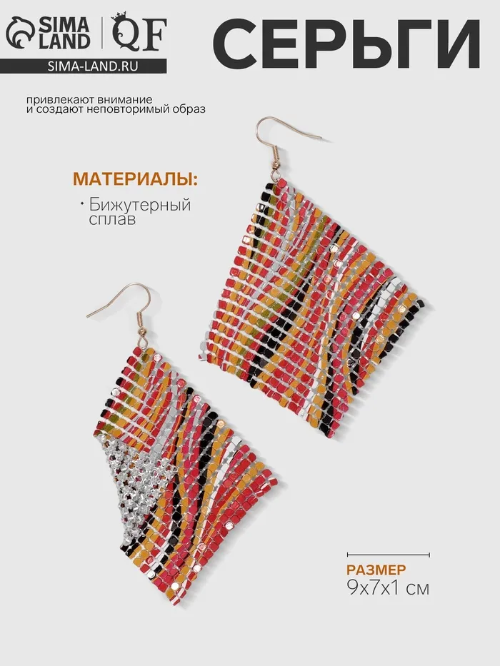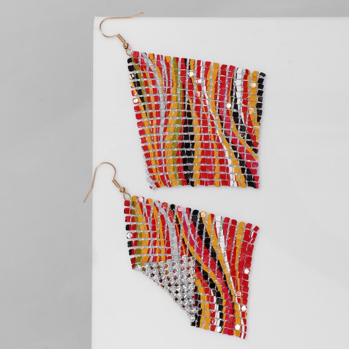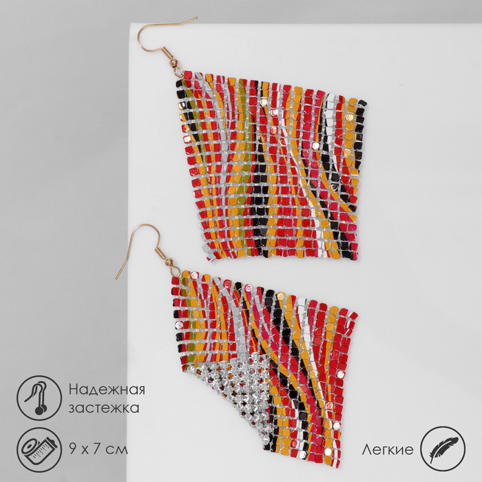 Серьги висячие «Ромб» кольчуга, волны, цветные, 9 см — Характеристики