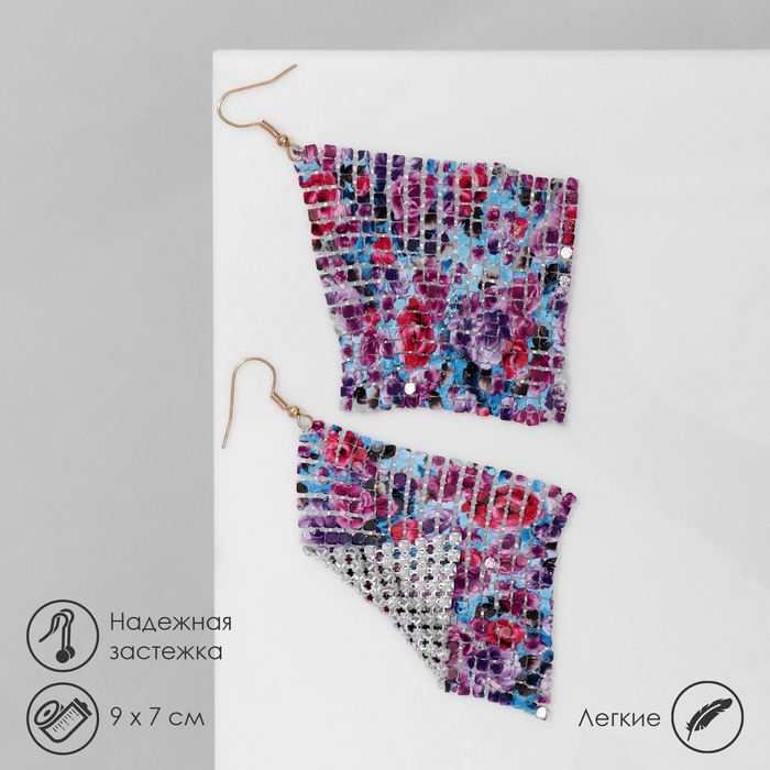 Серьги висячие «Ромб» кольчуга, всплеск цветов, цветные, 9 см — Характеристики