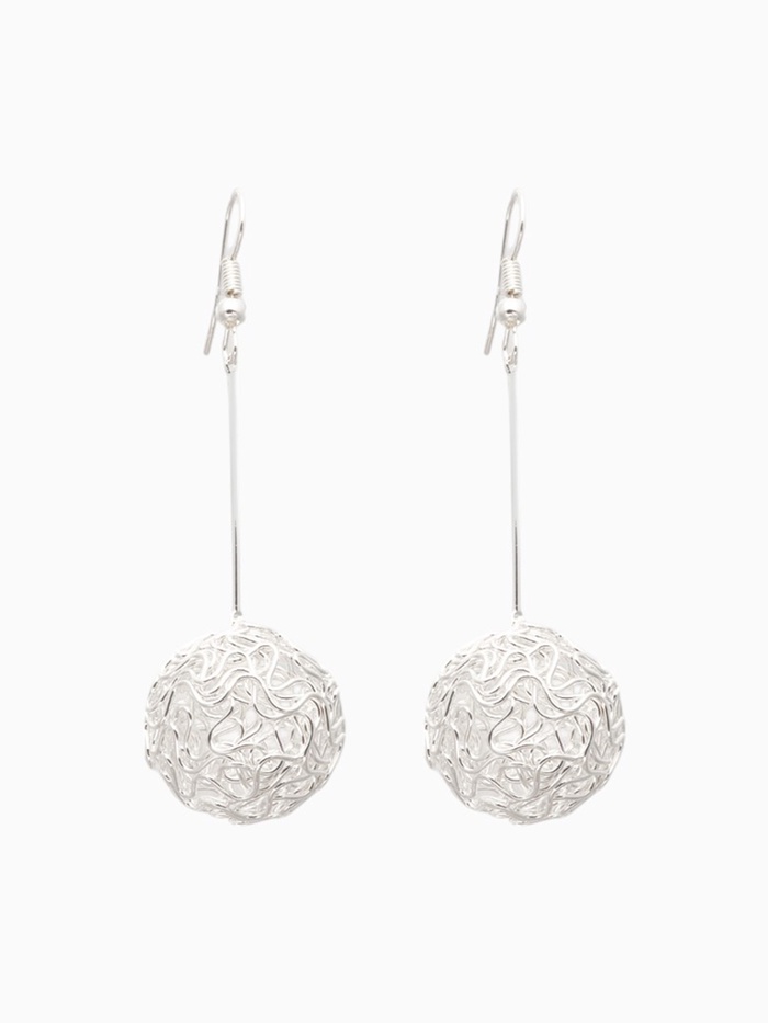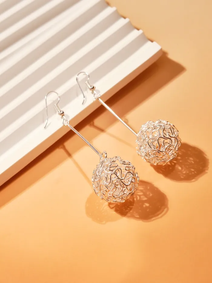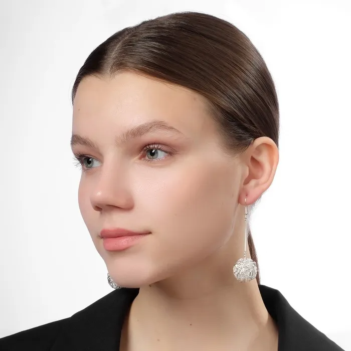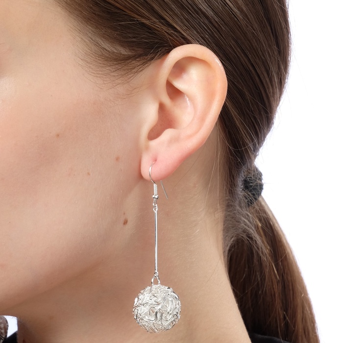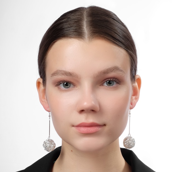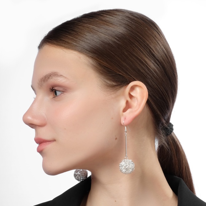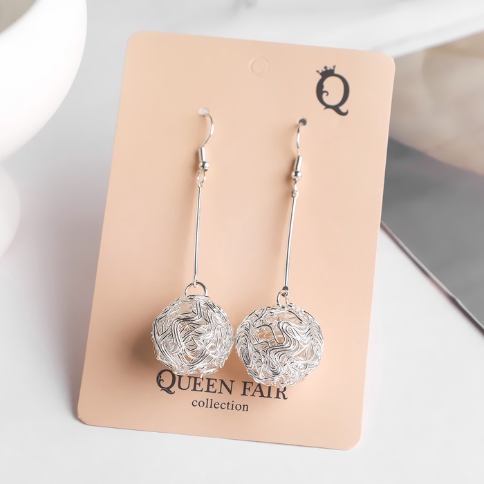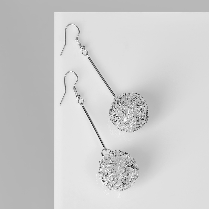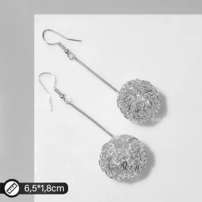 Серьги висячие «Шарик» переплетение, цвет светлое серебро, 6,5 см — Характеристики
