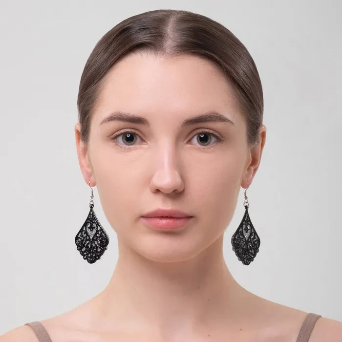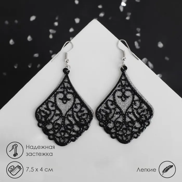 Серьги висячие «Шелест» восточная капля, ажур, блестка, цвет чёрный, 7,5 см — Характеристики