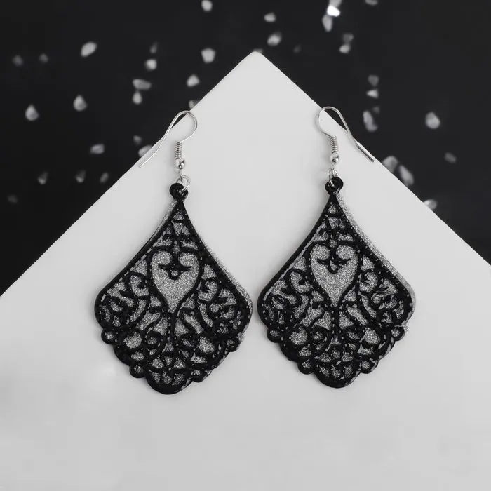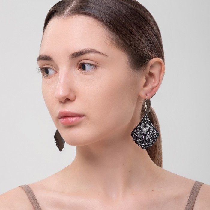Длинные серьги висячие «Шелест» восточная капля, ажур, блестка, цвет чёрный, 7,5 см с конструкцией, части которой напоминают геометрические фигуры, созданы специально для ценительниц оригинальных украшений. Украшение подчеркнет изящные линии вашего лица, зрительно удлинит шею и придаст шарма создаваемому образу.