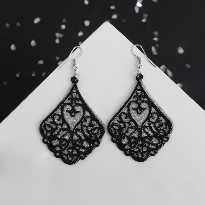 Серьги висячие «Шелест» восточная капля, ажур, блестка, цвет чёрный, 7,5 см