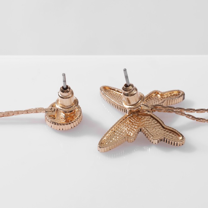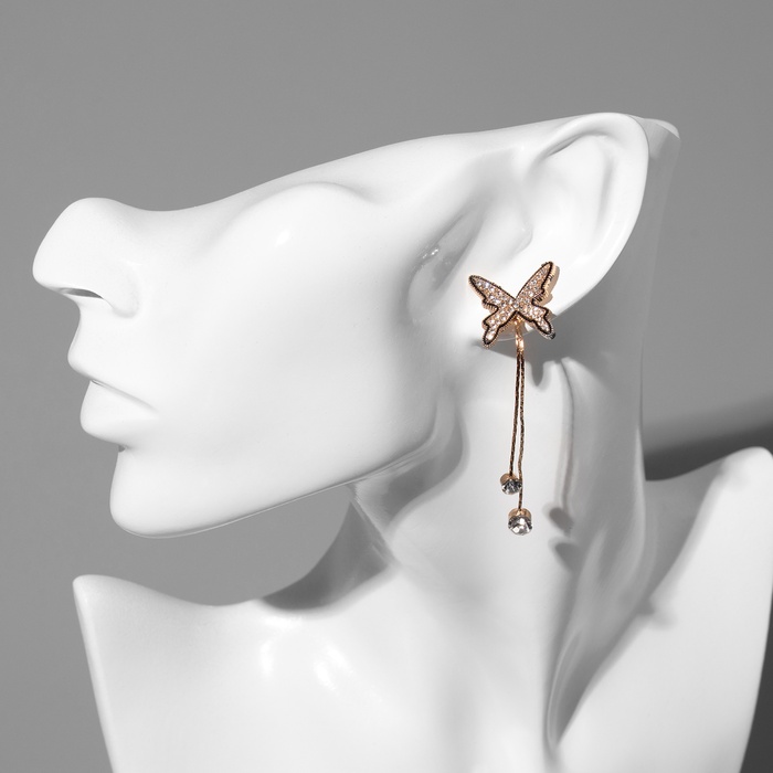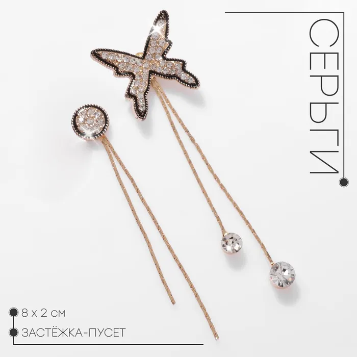 Серьги висячие со стразами «Бабочка» и круг, цвет чёрно-белый в золоте — Характеристики