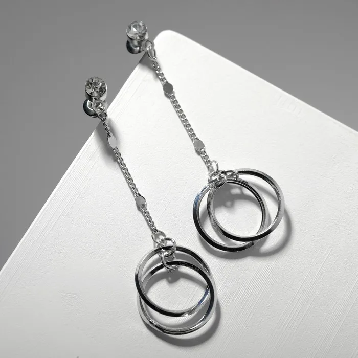 Серьги висячие со стразами «Чувства» кольца, белые в серебре, 5.5 см — Характеристики