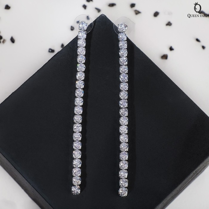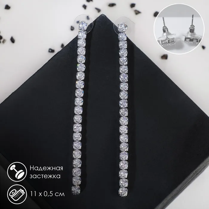 Серьги висячие со стразами «Дорожка» минимал, белые в серебре, 11 см — Характеристики
