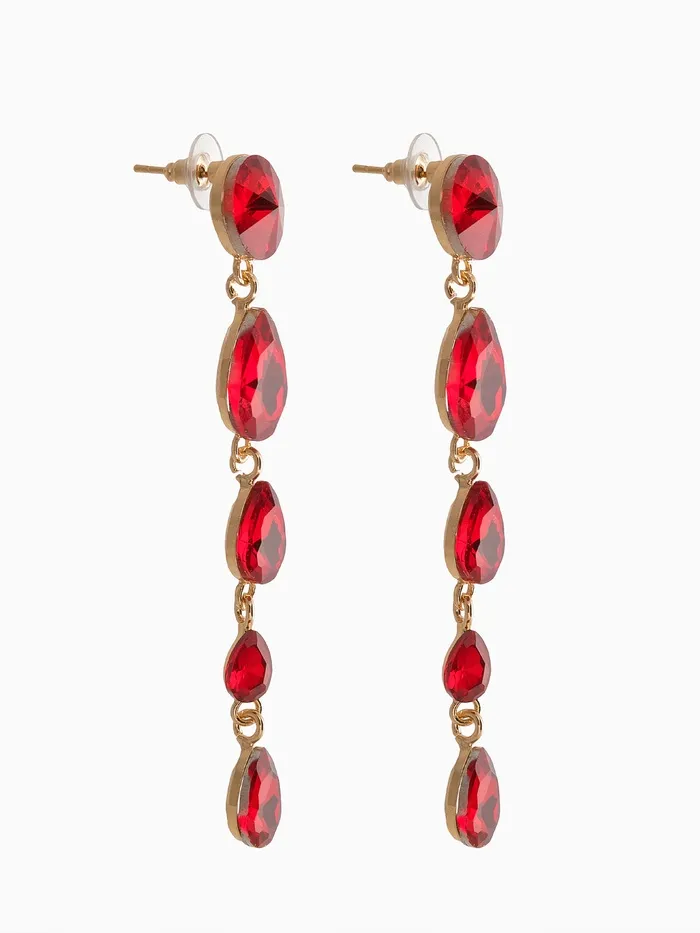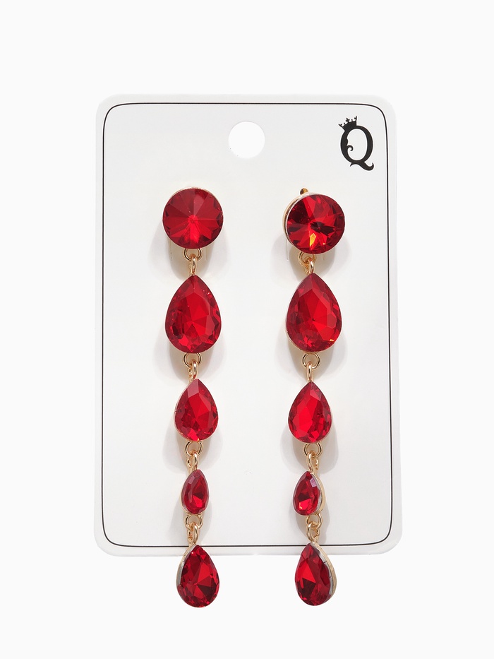 Эти висячие серьги с красными стразами в золотом исполнении привлекают внимание своей выразительностью и изяществом. Длина 9,5 см придаёт образу динамичность и элегантность, а яркий красный оттенок стразов создаёт эффектный акцент, идеально подходящий для праздничных и повседневных образов.