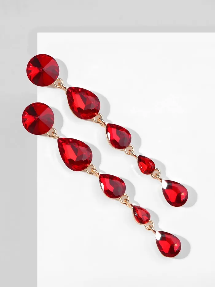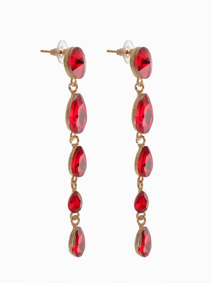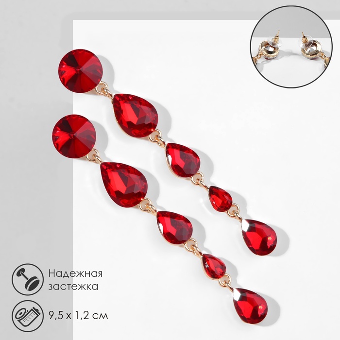 Серьги висячие со стразами «Драгоценность» капли, красные в золоте, 9.5 см — Характеристики