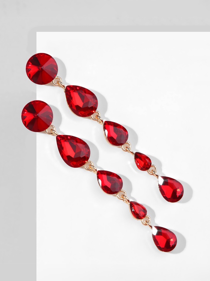 - Выразительный дизайн: красные стразы в форме капель создают эффект драгоценности, добавляя образу роскоши и утончённости.