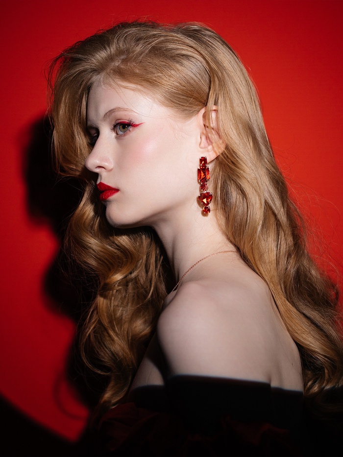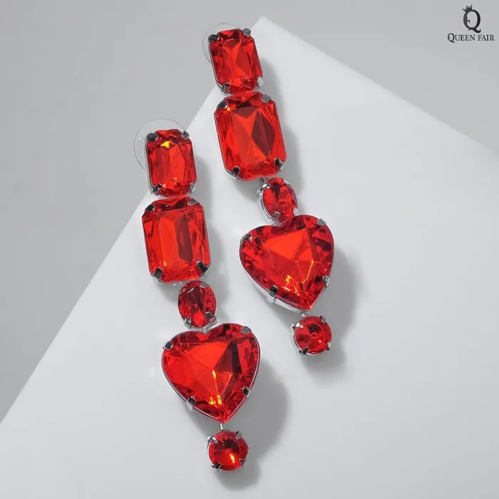 Серьги висячие со стразами «Драгоценность» сердце, цвет красный в серебре, 7см — Характеристики