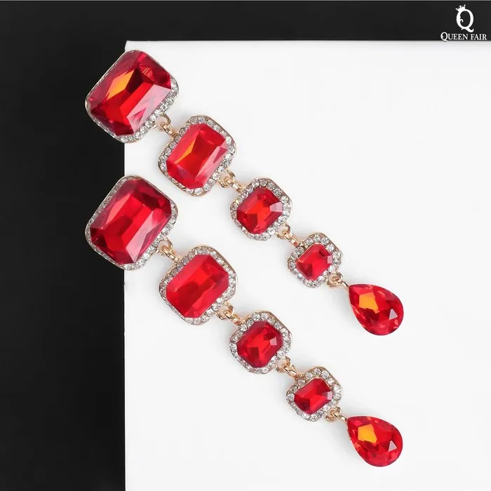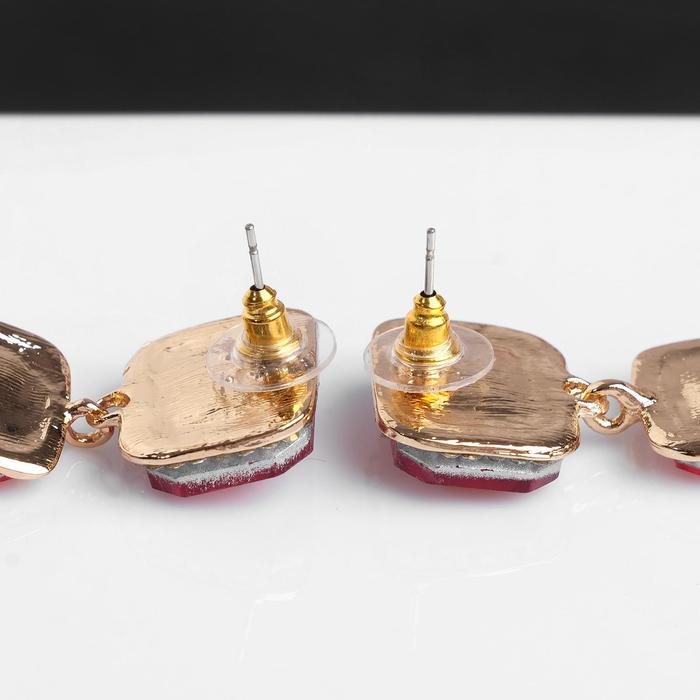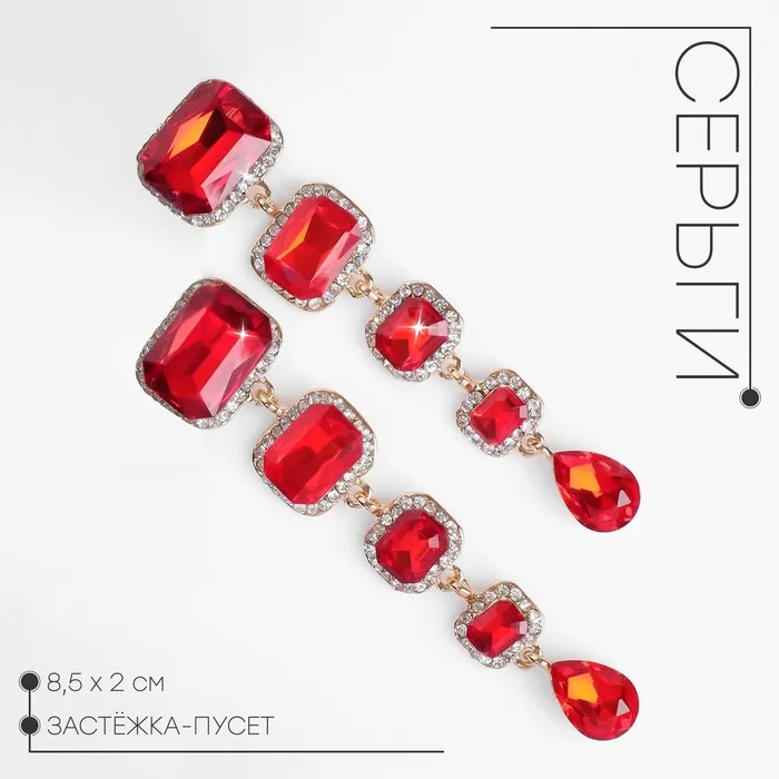 Серьги висячие со стразами «Флюид» малый, цвет бело-красный в золоте, 8,5 см — Характеристики