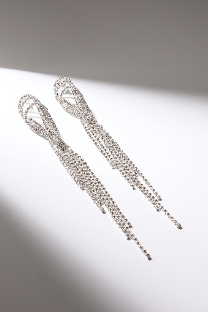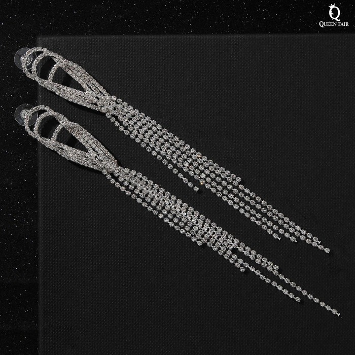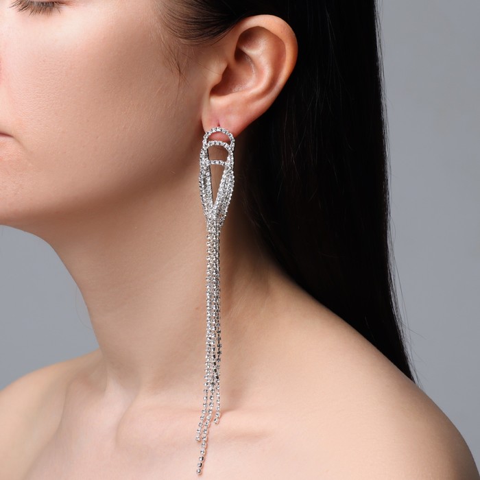 Серьги висячие со стразами «Голливуд» капли с нитями, белые в серебре, 15.5 см — Характеристики