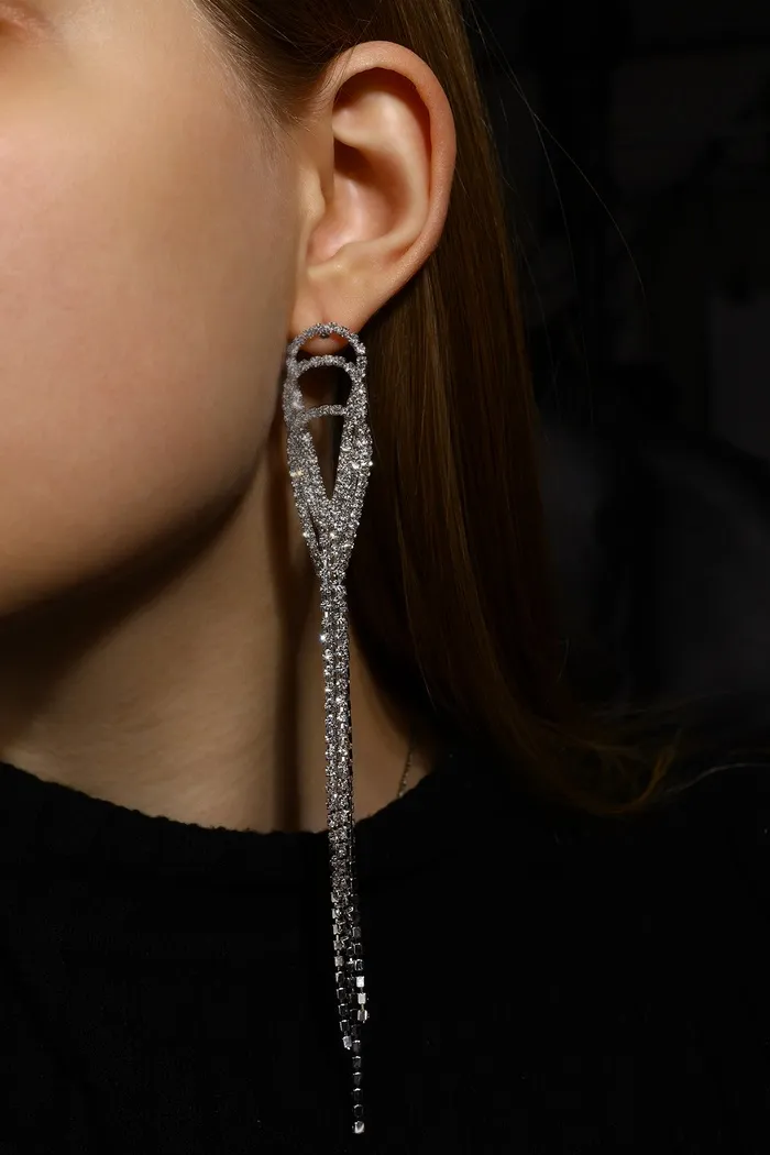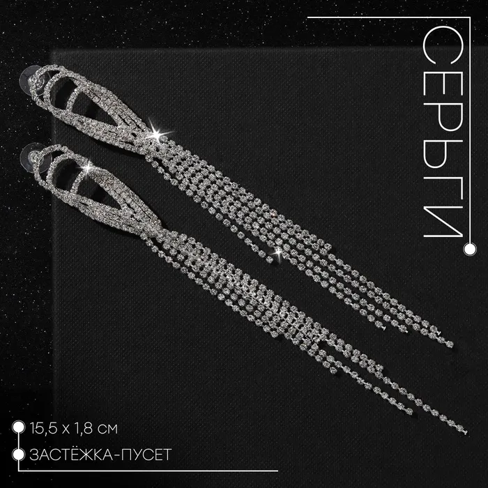 Серьги висячие со стразами «Голливуд» капли с нитями, белые в серебре, 15.5 см — Характеристики