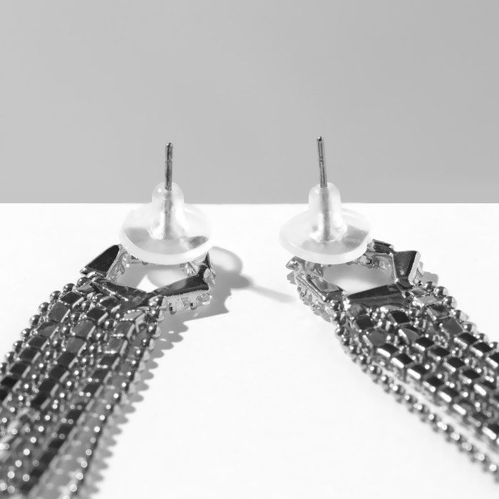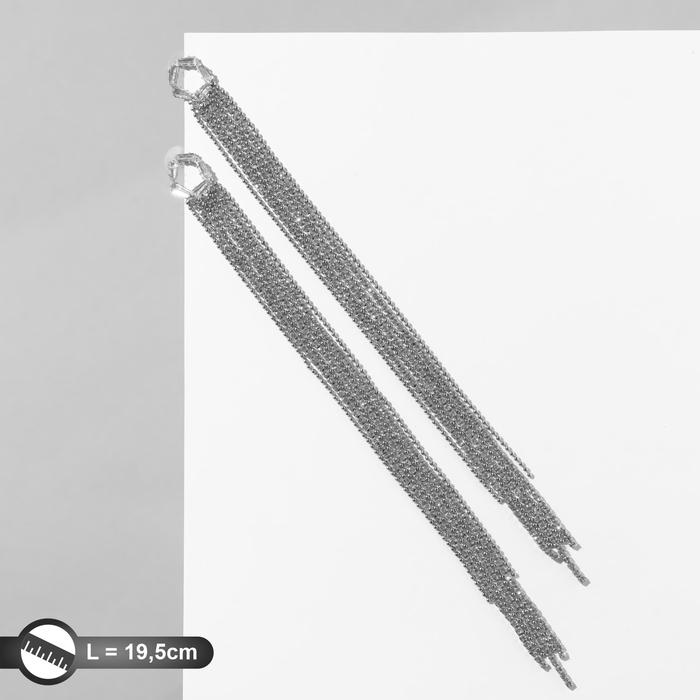 Серьги висячие со стразами «Голливуд» кольца из прямоугольников, белые в серебре, 19.5 см — Характеристики