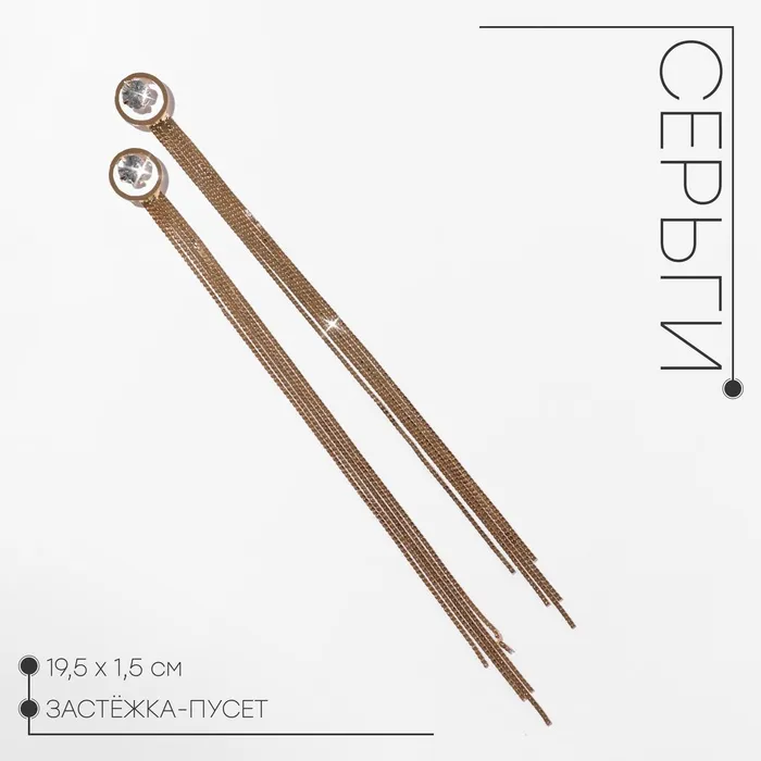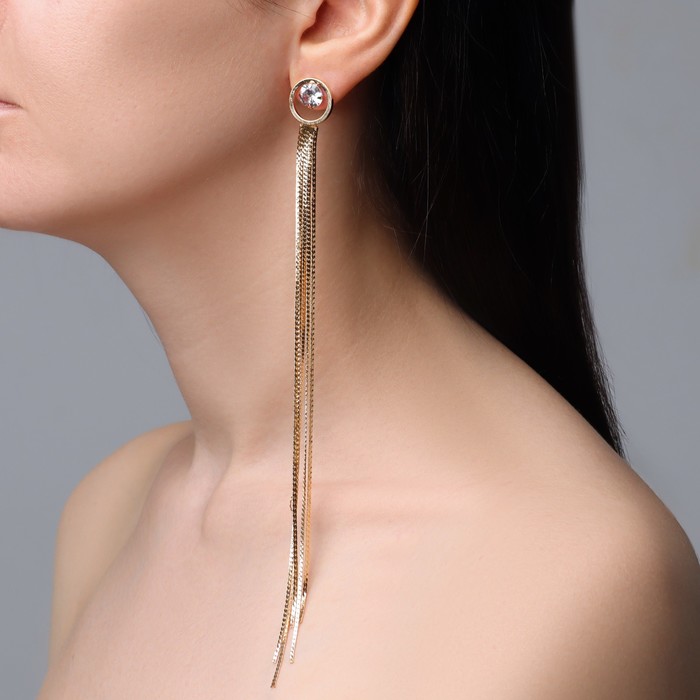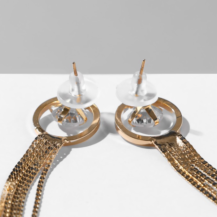 Серьги висячие со стразами «Голливуд» кольца с нитями, цвет белый в золоте, 19,5 см — Характеристики
