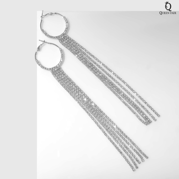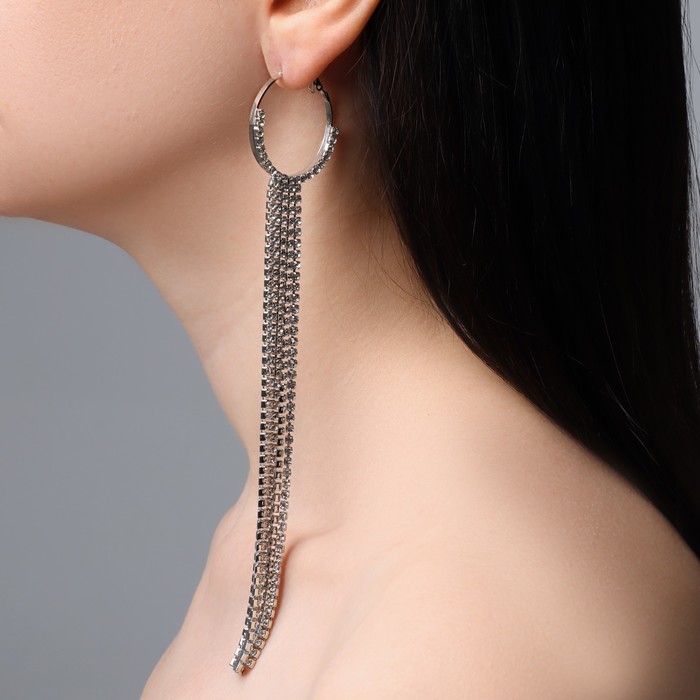 Серьги висячие со стразами «Голливуд» нити на кольцах, цвет белый в серебре, 17 см — Характеристики