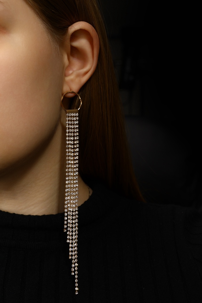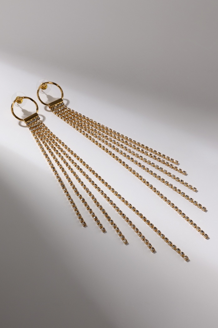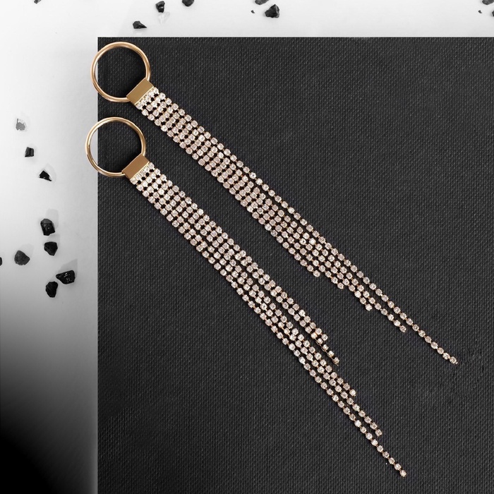 Серьги висячие со стразами «Голливуд» нити на кольце, цвет белый в золоте, 16 см — Характеристики