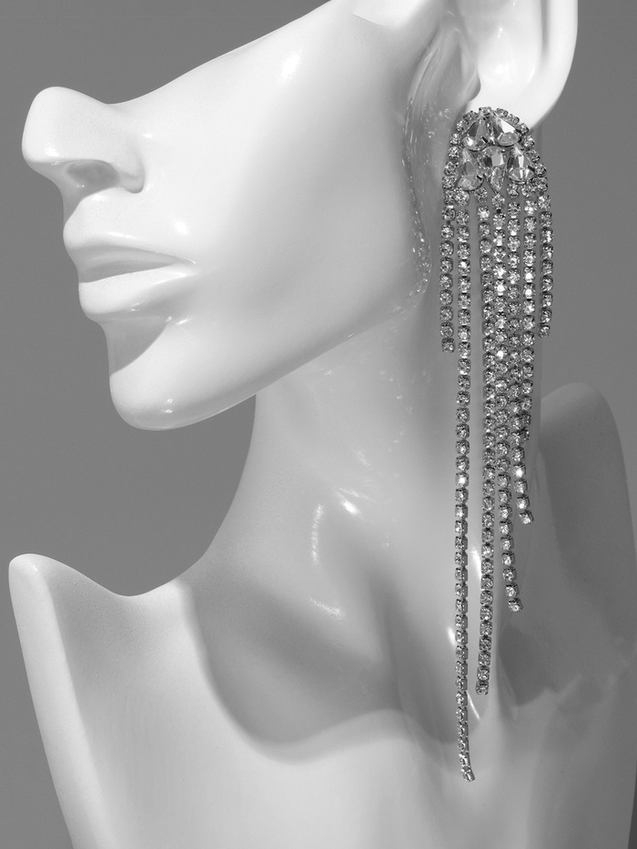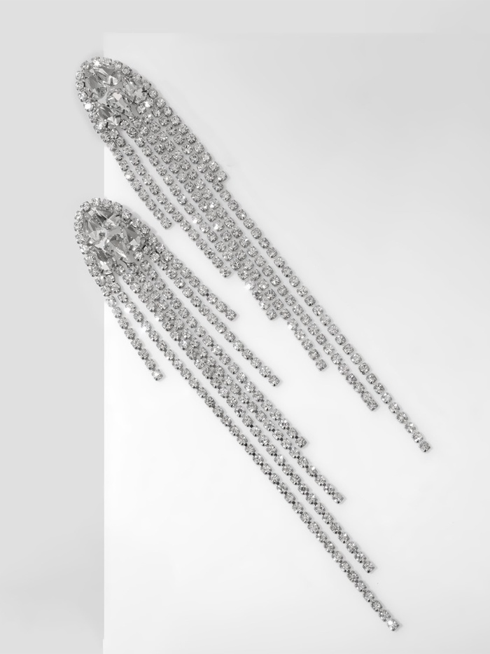 Серьги висячие со стразами «Голливуд» нити на кристаллах, цвет белый в серебре, 15 см — Характеристики