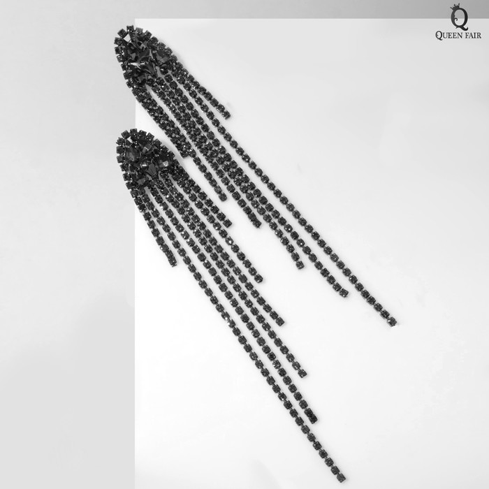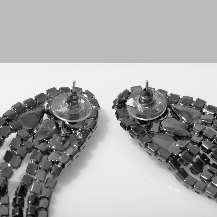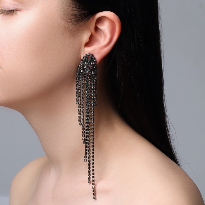 Серьги висячие со стразами «Голливуд» нити на кристаллах, цвет серый в сером металле, 15 см — Характеристики