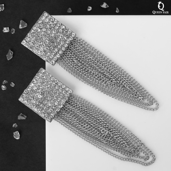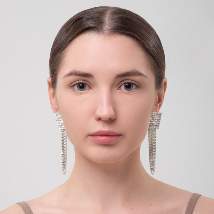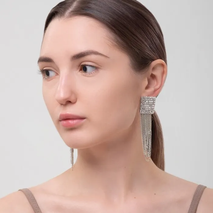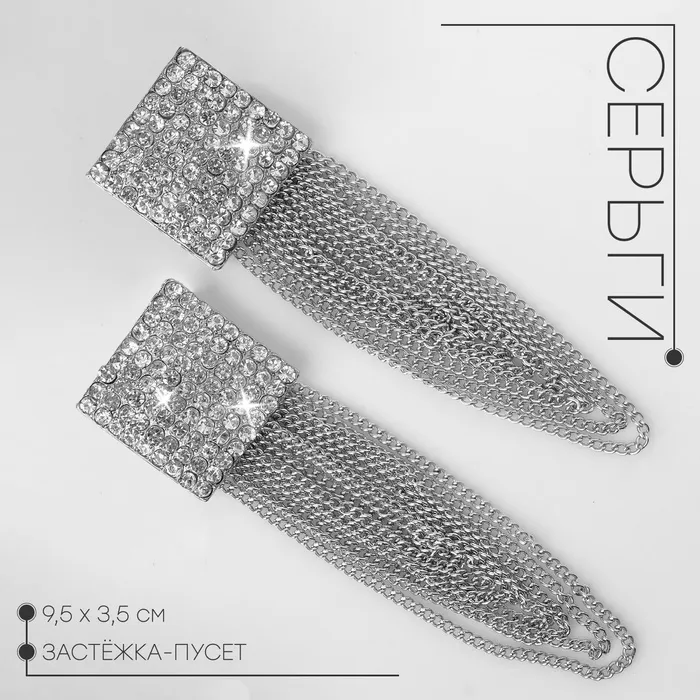 Серьги висячие со стразами «Голливуд» нити в квадрате, белые в серебре, 9.5 см — Характеристики