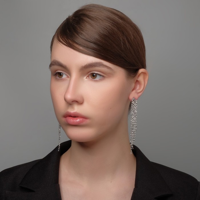 Серьги висячие со стразами «Голливуд» объёмные кристаллы, белые в сером металле, 9.5 см — Характеристики