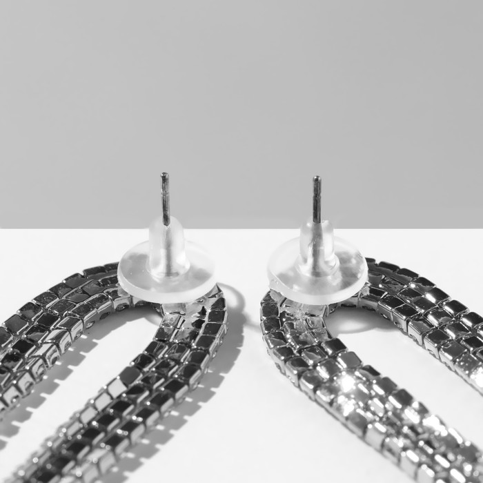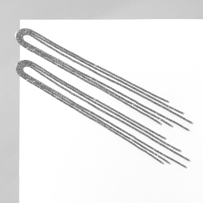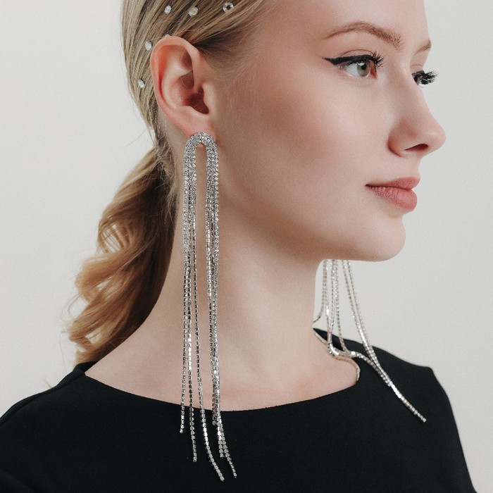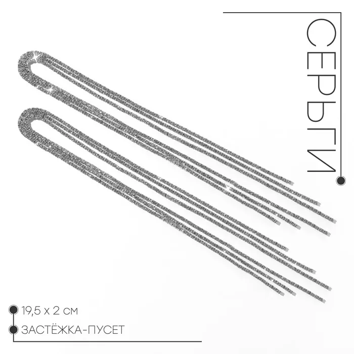 Серьги висячие со стразами «Голливуд» полукруг, 6 рядов, белые в серебре, 19.5 см — Характеристики