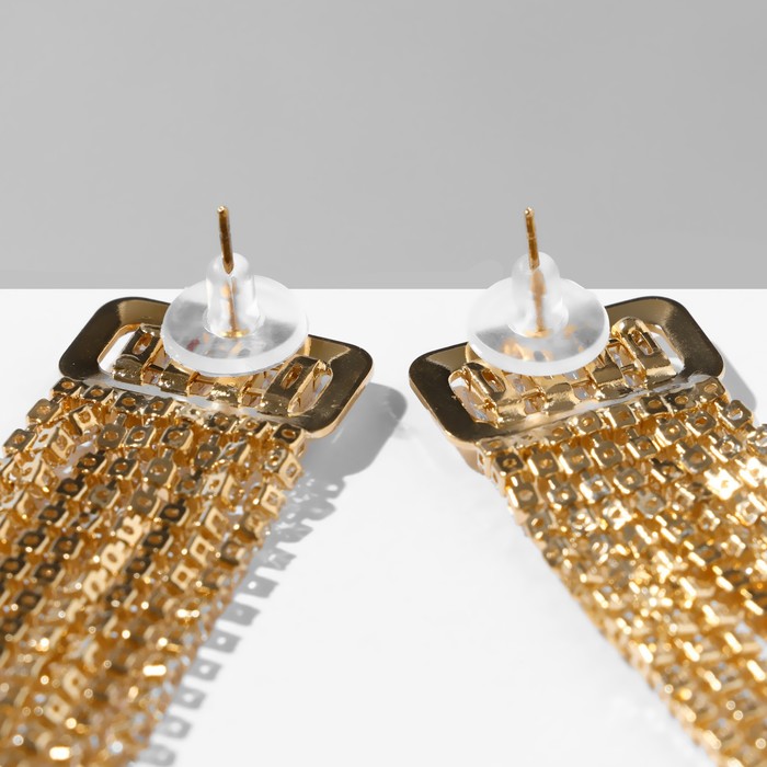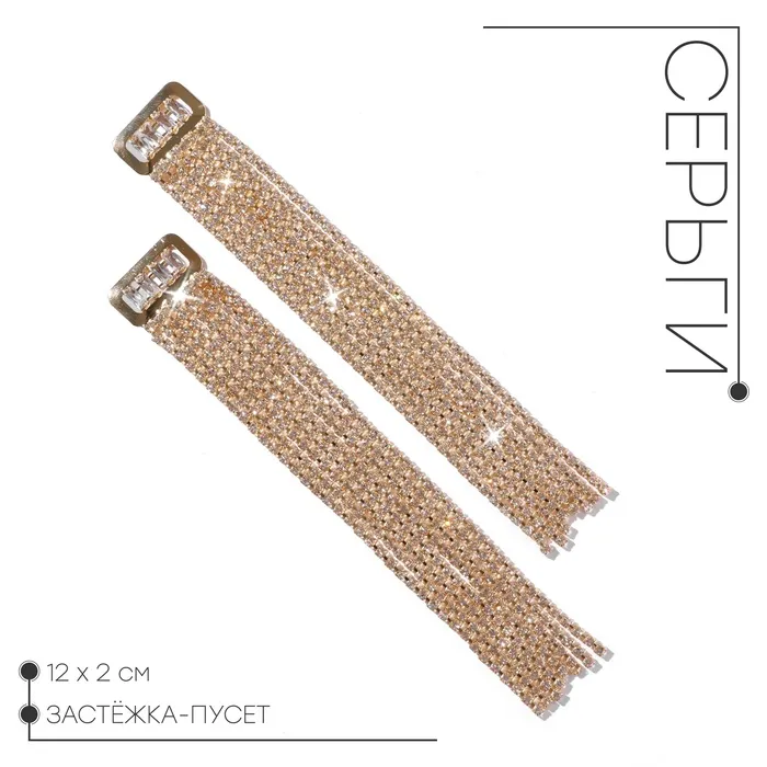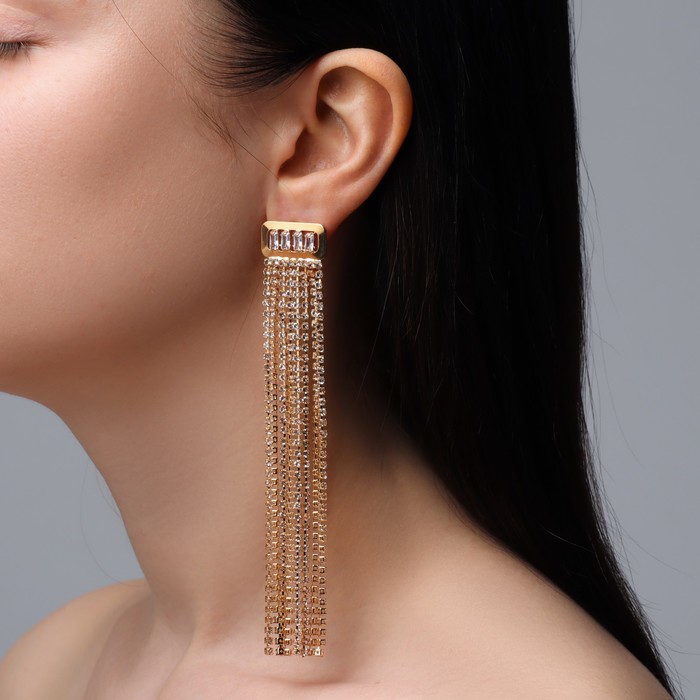 Серьги висячие со стразами «Голливуд» прямоугольник, 8 рядов, цвет белый в золоте, 12 см — Характеристики