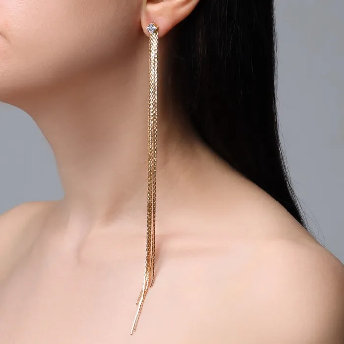 Серьги висячие со стразами «Голливуд» тонкость линий, цвет белый в золоте, 19,5 см — Характеристики