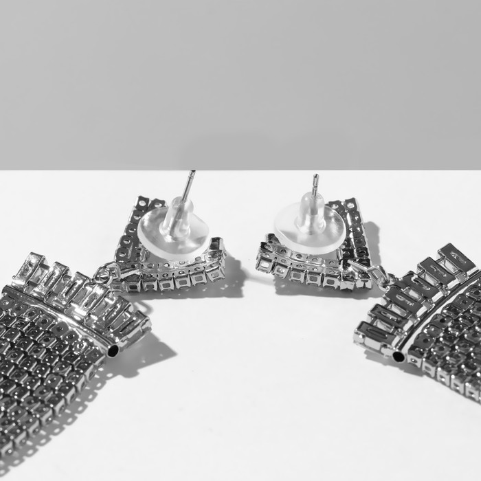 Серьги висячие со стразами «Грация» сердца, 8 рядов, цвет белый в серебре, 8 см — Характеристики