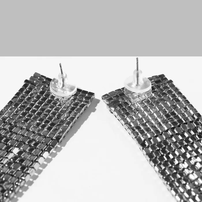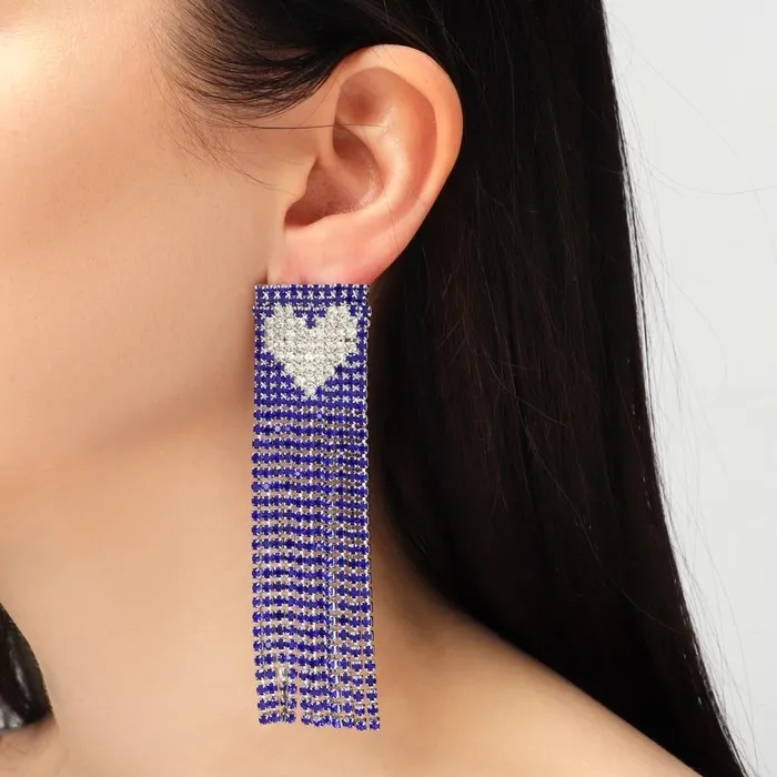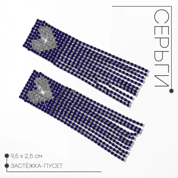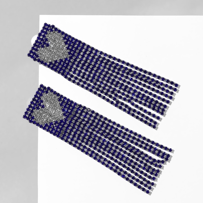 Серьги висячие со стразами «Грация» сердца в квадрате, цвет бело-синий в серебре, 9,5 см — Характеристики