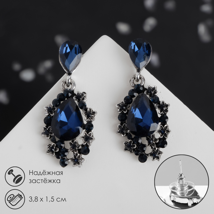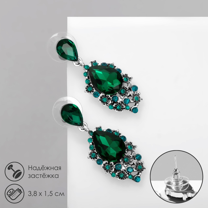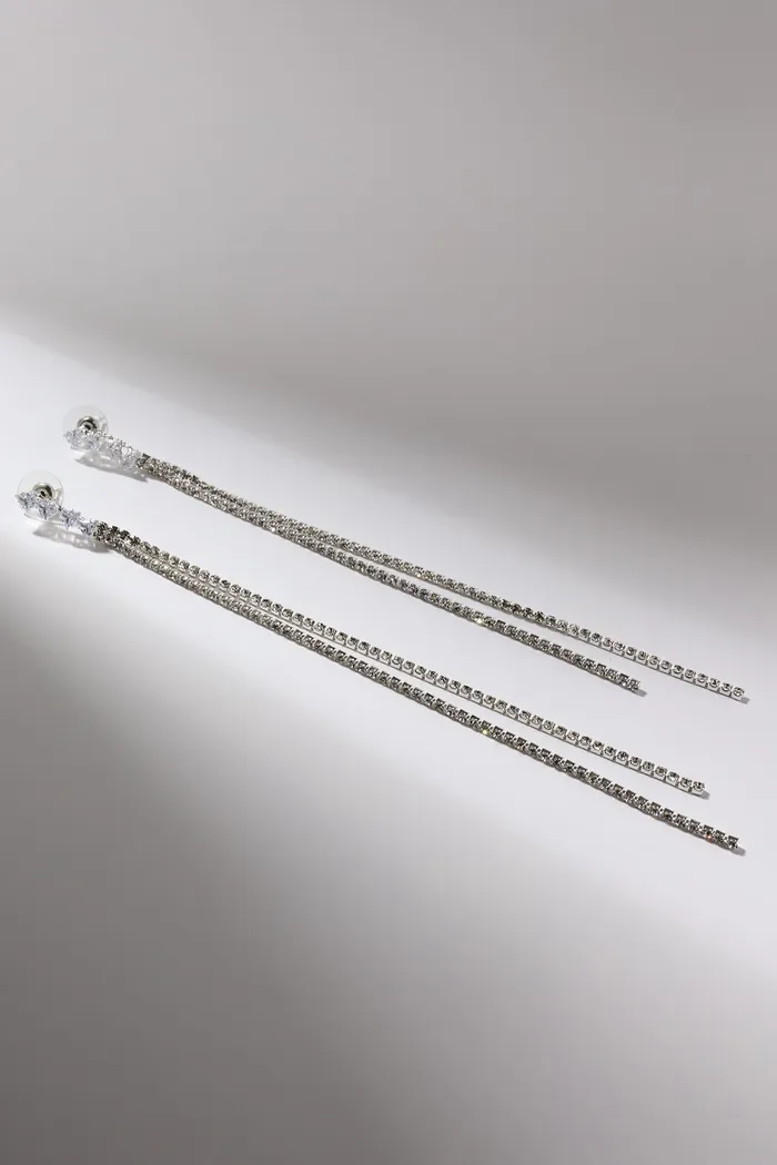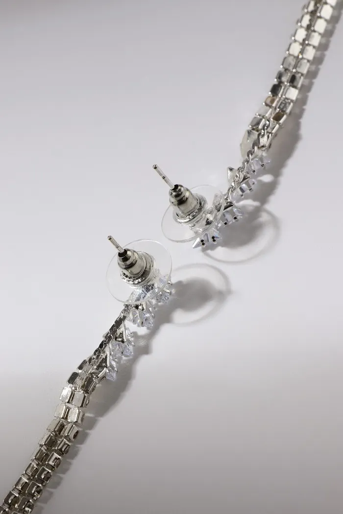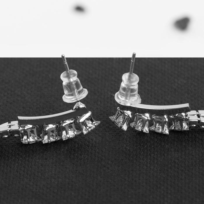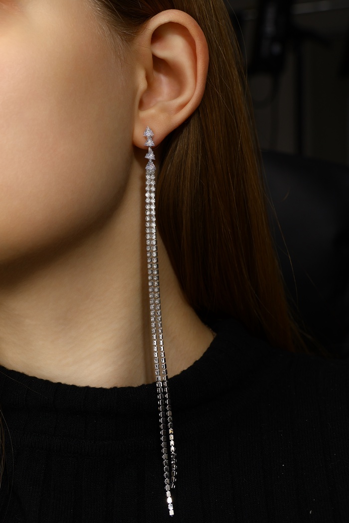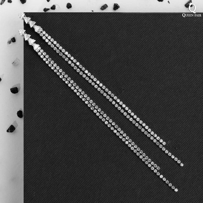 Серьги висячие со стразами «Капель» две нити, белые в серебре, 15.8 см — Характеристики