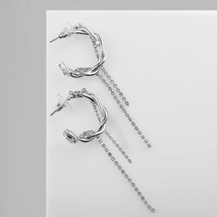 Серьги висячие со стразами «Кольца» с подвесками, белые в серебре — Характеристики