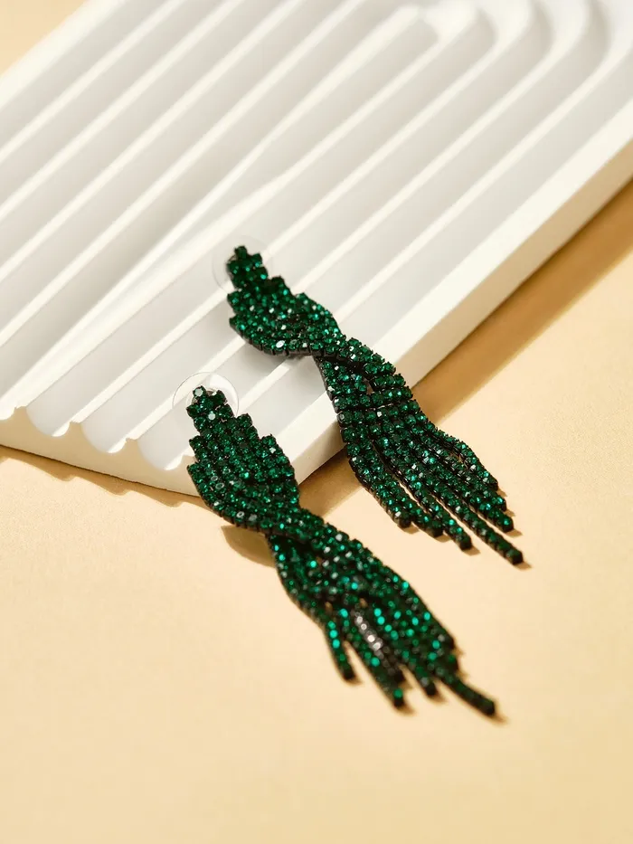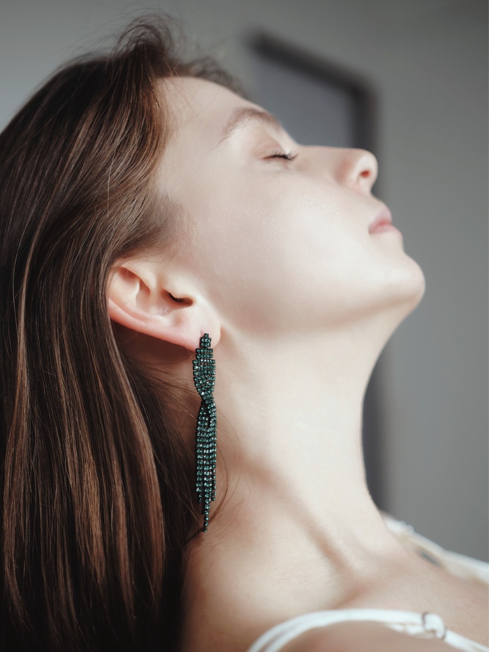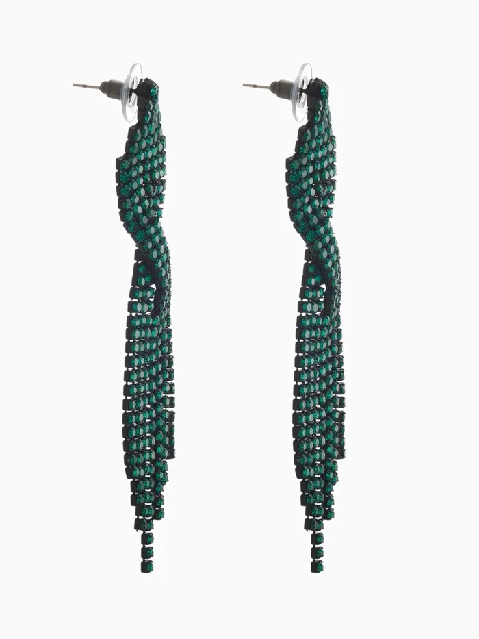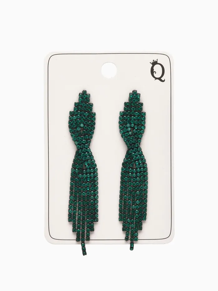 Серьги висячие со стразами «Маскарад» икс, зелёные, 9 см — Характеристики