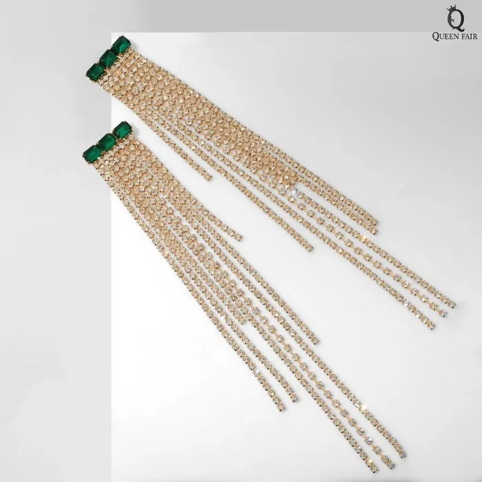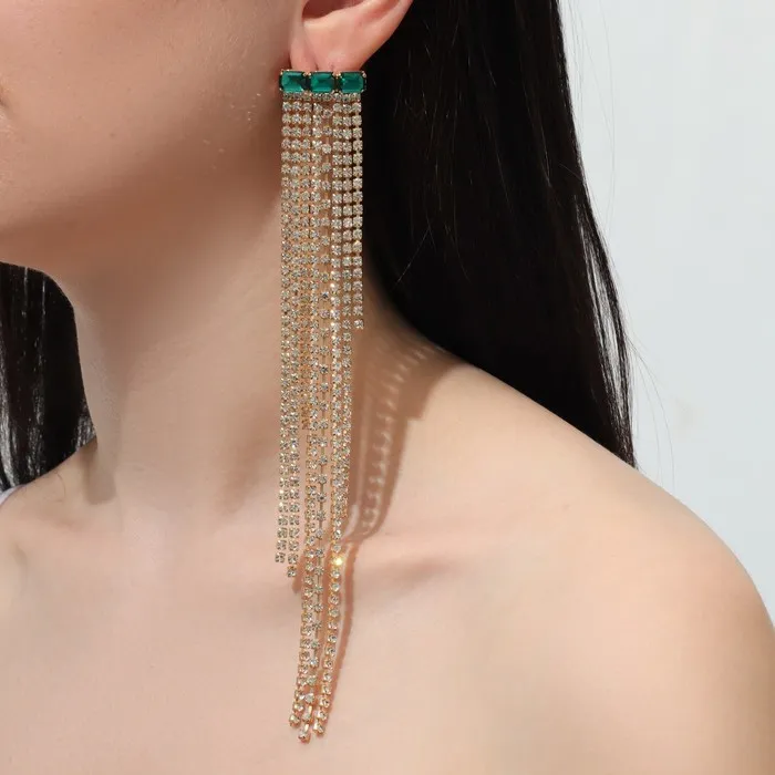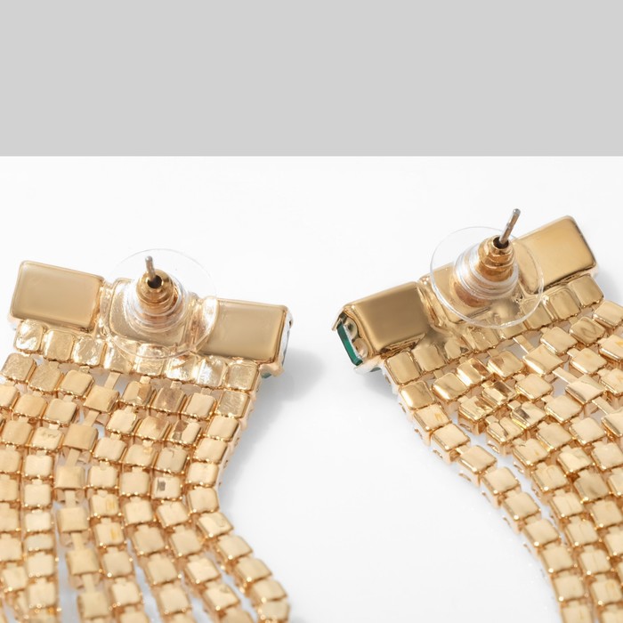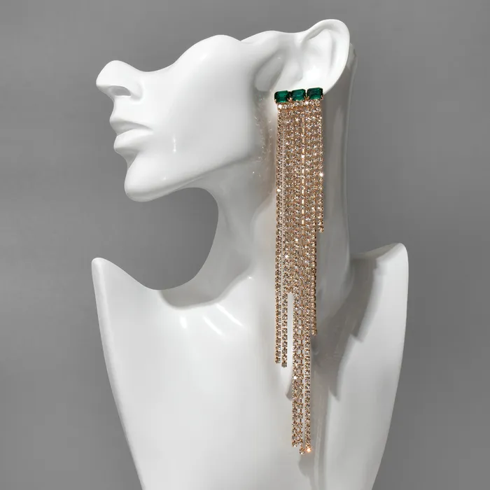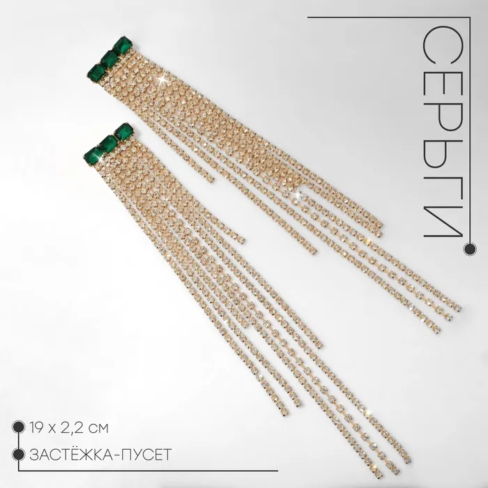 Серьги висячие со стразами «Мулен Руж» водопад, цвет бело-зелёный в золоте, 19 см — Характеристики
