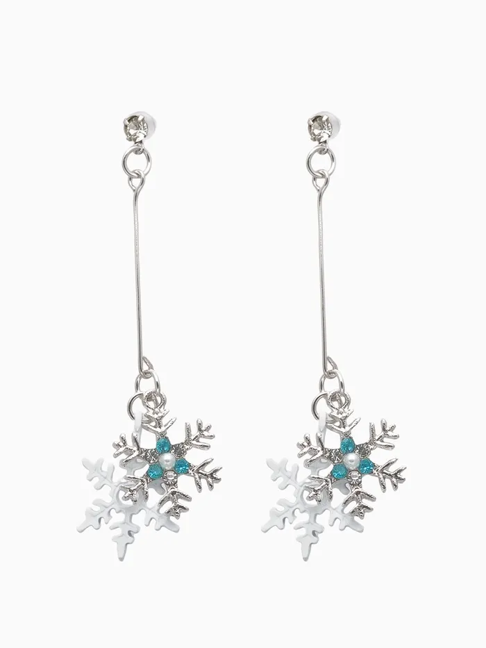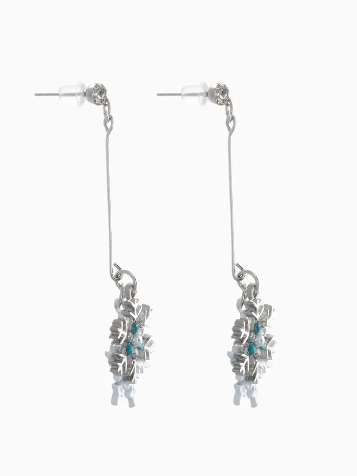 Изящные серьги с подвесками в виде двух снежинок воплощают атмосферу зимней сказки и праздничного настроения. Серебристый оттенок металла гармонично сочетается с нежными бело-голубыми эмалевыми вставками и сверкающими стразами, создавая лёгкий и воздушный образ, который понравится каждой девочке.