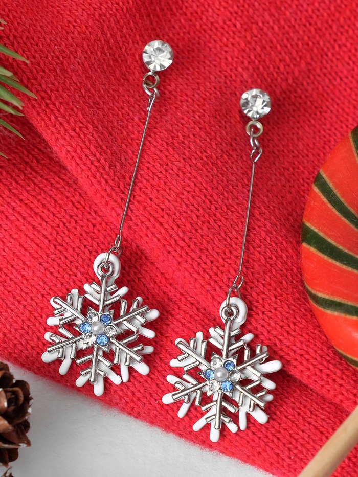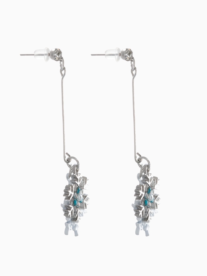 Серьги висячие со стразами «Новогодние» две снежинки, бело-голубые в серебре — Характеристики
