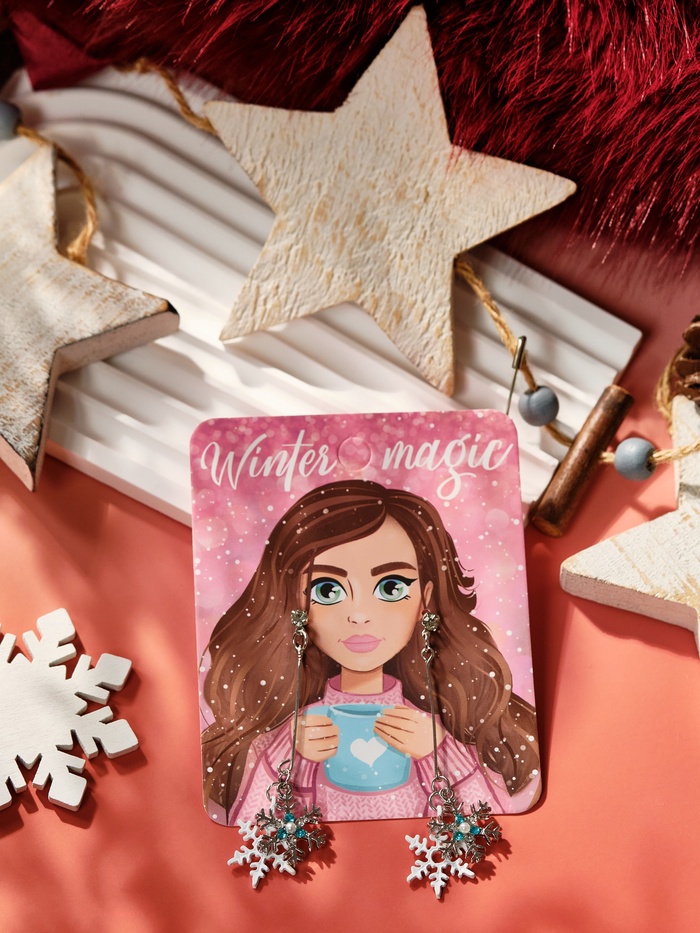 Эти серьги — не просто аксессуар, а маленькое волшебство, которое добавит в образ девочки очарование зимних праздников и станет символом радости и света в холодные дни.