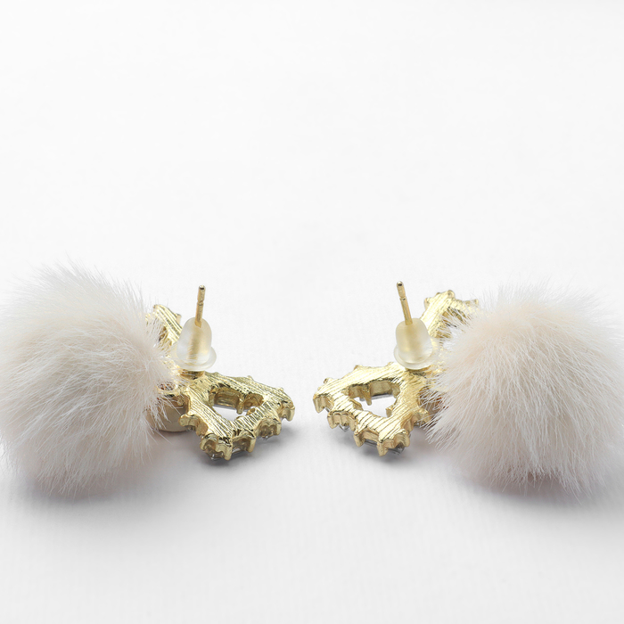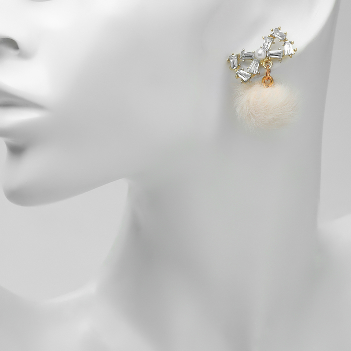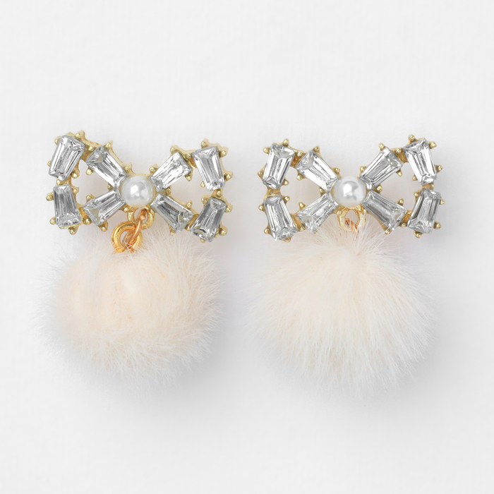 Серьги висячие со стразами «Новогодние» пушистый бант, белый в золоте — Характеристики