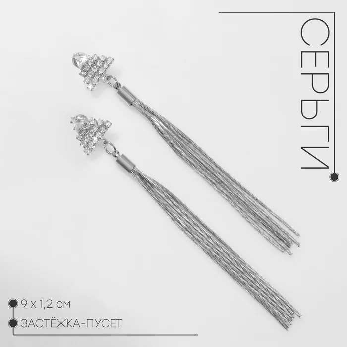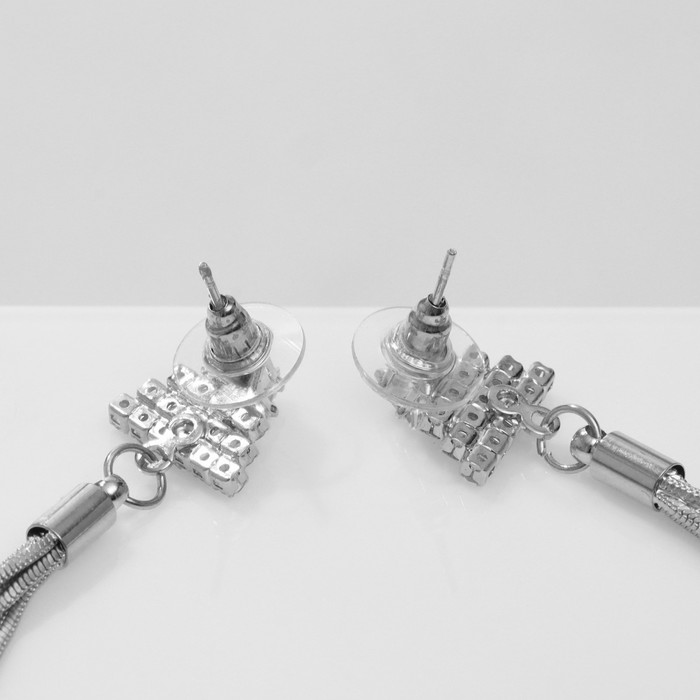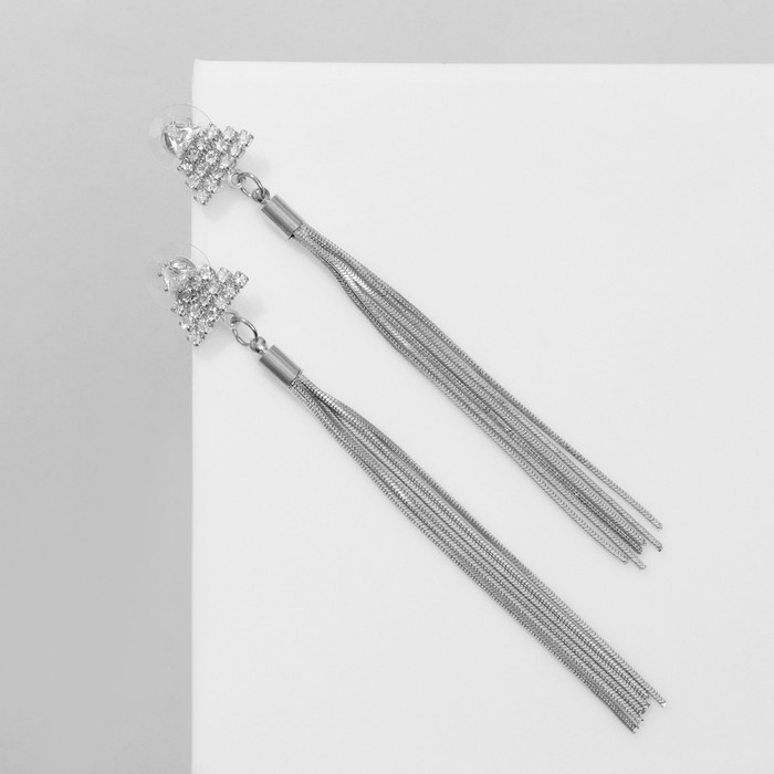 Серьги висячие со стразами «Одиссея» треугольник, цвет белый в серебре — Характеристики